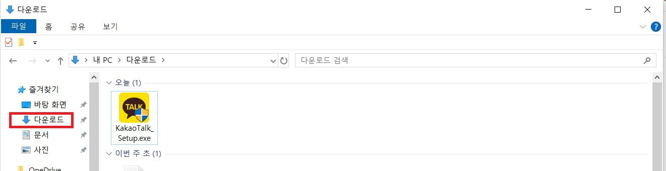 1) 다운받은 해당 폴더로 들어가서 카카오톡 설치파일을 두번 클릭합니다.